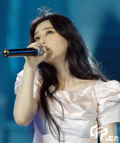 范冰冰身穿淡粉色長裙,里面搭配黑色Bra盡顯無疑。