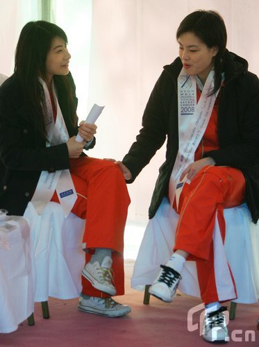 2008年10月26日,北京,中國紅基會主辦的2008“愛的行走”大型公益健走活動在朝陽公園舉行。郭晶晶、吳敏霞、邱鐘惠、孫悅等運動員牽手乳腺癌患者,與招募到的愛心人士一起在朝陽公園健走,為不幸罹患乳癌的女性募集善款。郭晶晶腳上穿著之前出席活動穿過的舊鞋,婆家身家不菲的她依然節儉過活。