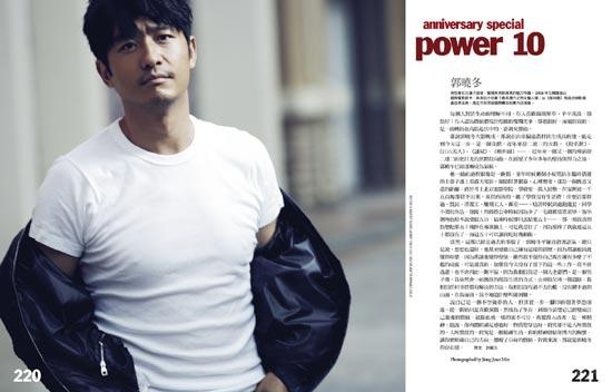 這次,曾被某國際電影節評價為“最具國際潛力男藝人”稱號的郭曉冬,被《VOGUE》評選為“十大最具國際魅力的亞洲男明星”,與郭曉冬一起入選年度十大Power Men的還有周杰倫、金城武、吳尊、古天樂、李連杰、小田切讓、堂本剛、裴勇俊、李俊基。他們都在各自的領域有著鮮明的特質;活的有型有款,有想法,有態度;在本質的基礎上,不將自己局限于單一領域。