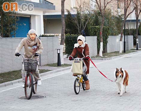 張衛健張茜入住北京千萬愛巢 新居旁騎單車遛狗
