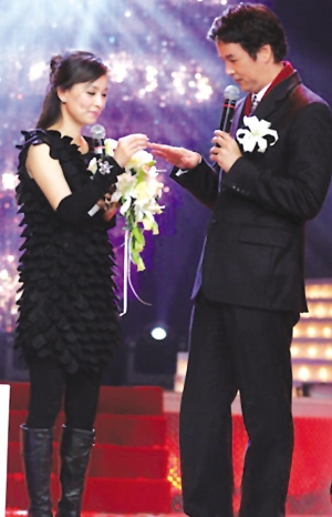 明星情侶林瑞陽、張庭5日雙雙現(xiàn)身上海“2009十大快樂明星家庭晚會”錄制現(xiàn)場,林瑞陽當眾再次向張庭求婚,十分浪漫。