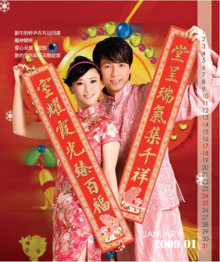 翁紅新年掛歷秀旗袍與老公恩愛 寶寶可愛出鏡