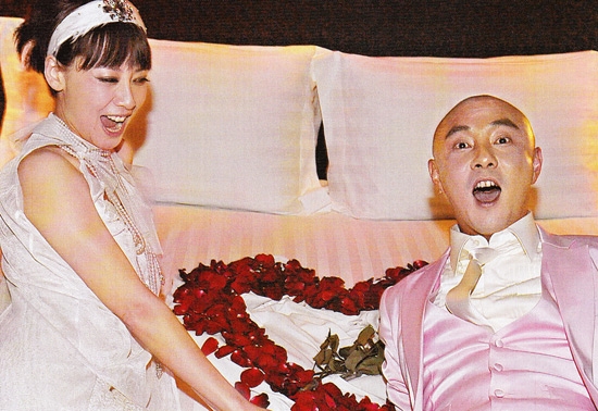 一對新人下午在教堂行禮,晚上在酒店開十八席,在5分鐘煙花下,新郎新娘相擁激吻,令全場賓客起哄;檠绾蠓蚱迋z返新房,張衛健坦言婚后努力造人!