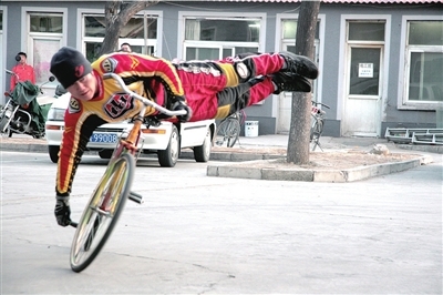 車王周長春表演自行車節目。本報記者朱嘉磊攝
