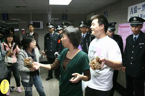 工作人員向媒體分發喜糖。 昨(13日)晚9點25分,主持人李湘在北京協和醫院施行剖腹產手術,順利生下一重5斤8兩的女嬰。據悉,目前李湘母女平安,做了爸爸的王岳倫異常激動。 李湘的芒果影業宣傳總監李亮文此前向媒體透露,李湘計劃在13日生產。昨天中午11點40分,守候在醫院的記者發現有工作人員帶著大量金紙包裝的盒裝巧克力進入李湘的病房。據知情人透露,該工作人員原在《快樂大本營》欄目組工作,現在是李湘身邊的工作人員。其攜帶的巧克力是為李湘生產后準備向親友派發的喜糖。李湘老公從前晚開始,一直陪伴在身邊。李湘生下女兒后,王岳倫顯得異常高興。王岳倫表示,還沒從剛當上父親的興奮中走出來,所以沒法說什么,只是感謝大家的關心。不過此前王岳倫和李湘都表示過,今年兩人是雙喜臨門,首先是當上父母,另外就是新片《熊貓大俠》將上映。 |