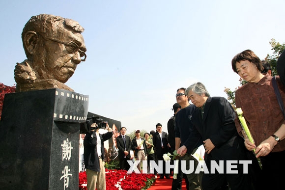 上午10點30分,上影集團總裁任仲倫宣布揭幕禮開始。簡短的儀式結束后,人們緩緩地走到謝晉導演的銅像前,肅立、獻花、鞠躬、告別。“謝晉為人民做了很小的工作,可惜他早走一步,不能為人民做更多的工作,感謝大家對他的愛護。”簡單的致辭,深深的一鞠躬,謝晉夫人徐大雯向所有來賓表示謝意。