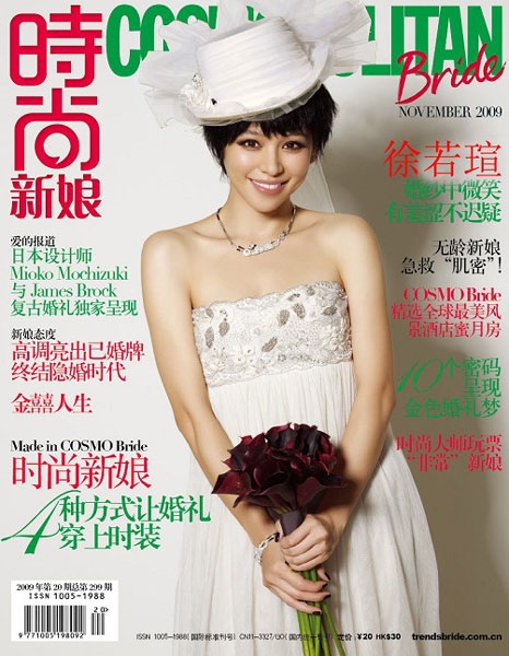 近日,徐若瑄首登《時尚新娘》封面,拍攝純美婚紗大片。這是徐若瑄出道以來首度以婚紗造型飾人,照片中徐若瑄變身多面新娘,果敢而嬌俏,幸福之感溢于言表,徐若瑄羞澀的表示很期待步入婚姻殿堂的時刻能快些到來。而近來徐若瑄忙于多部電影的拍攝及代言等工作,成績斐然。