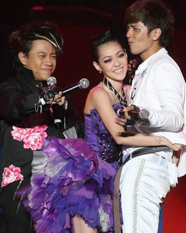 小S、蔡康永10月30日在成都主持“康熙盛典演唱會”,被媒體封為“色女”的她照例瘋狂揩油,連張柏芝的老公謝霆鋒也不放過,當對方一曲唱畢,她即拿著萄葡喂他,嚇得謝霆鋒拿出婚戒直求饒說:“我是已婚男人,這樣不太好吧!”