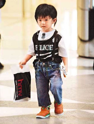 據香港媒體報道,前日(10月31日)萬圣節前夕約下午5時,香港記者在香港中環發現扎了一條辮子的Lucas,一身小警察打扮,手持銀色玩具槍,率領奶奶拉姑、胡須Kong及姑姑謝婷婷,于中建大廈一帶“巡邏”,甚有風范。