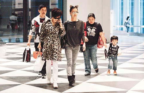 以往的萬圣節張柏芝總愛裝神扮鬼應節,現正她在家養胎,只好由兒子Lucas頂上。當天,為逗孫兒開心,拉姑手持一個橙色的南瓜桶,而婷婷則戴上貓耳朵頭箍,化身貓女郎應節,還邊行邊拿出相機為Lucas拍照。