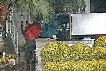 李家誠(chéng)與徐子淇在保鏢簇?fù)硐逻M(jìn)入1881。