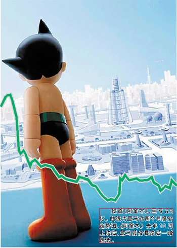 但是,《阿童木》的飛行軌跡卻未能如人意。該片在全球14個國家及地區放映,全球開支達人民幣8.2億元,但至去年12月底票房僅約人民幣1.9億元。資料顯示該公司2004年度起累積虧損達人民幣3.7億元,至去年底虧損擴大至人民幣6.3億元。