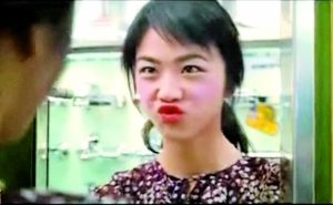 片中湯唯被迫與張學友相親,涂上厚厚的胭脂,有意扮丑。