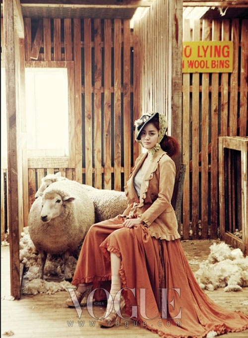 韓國女星金泰熙近日應邀為某時尚雜志拍攝歐洲田園風情寫真。身著古典長裙的她,變身中世紀牧羊女美艷依舊。