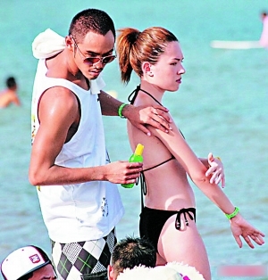 2007年阮經天在墾丁沙灘上為女友親密抹油,戀情因而曝光。