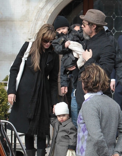 3月12日(周五),安吉麗娜-朱莉和布拉德-皮特抱著他們1歲大的龍鳳胎維維恩和諾克斯來到意大利威尼斯的Gritti Palace酒店。朱莉和皮特一人抱一個,兩個小家伙懵懵懂懂的樣子也特別可愛。34歲的安吉麗娜-朱莉目前正在當地拍攝新片《旅行者》(The Tourist),該片的男主角由約翰尼-德普扮演。