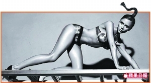 維多利亞將瑜伽姿勢運用在亞曼尼黑白廣告上。