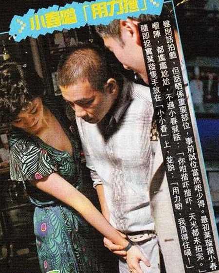 其中有一幕葉璇同陳小春因子女入名校而爭執(zhí),葉璇以其“咸豬手”狂抓陳小春下體一幕,更是全片笑料精華。據(jù)知,葉璇十分用力的用手叉過去,痛苦萬分的陳小春為了保住重要部位,惟有就地取材,硬塞廁紙入褲襠,場面十分搞笑!