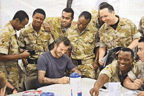 貝克漢姆探望駐阿富汗英軍 有求必應忙簽名