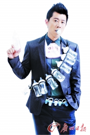 升級為奶爸的夏雨欣然用奶瓶、奶嘴作道具拍寫真。