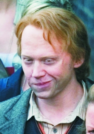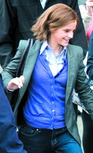 近日“哈利·波特”電影系列最后一部《哈利·波特與死神的圣物》多張片場照曝光。這組曝光的照片中,幾位小演員都化了老年妝,其中哈利(上)儼然成為了大叔,羅恩(下)的頭發顯得稀疏,而赫敏(右)的變化最不明顯。該片將在明年上映。