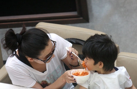 張柏芝喂Lucas吃飯