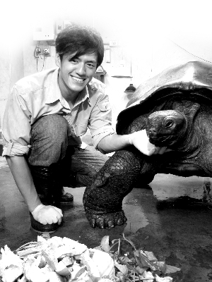 阿布最難忘的經(jīng)歷,是在節(jié)目中喂食700公斤的大象龜,管理員跟他說(shuō),大象龜很喜歡人摸它頸下,一摸它就停下來(lái)不吃東西,于是阿布就抓住象龜這個(gè)弱點(diǎn)不放。“其實(shí),我覺(jué)得象龜是覺(jué)得那樣抓很癢,但是因?yàn)樗聿奶恐貨](méi)辦法掙扎和反抗,我就一直搔它癢害它沒(méi)辦法吃東西,一直到它發(fā)出吼聲我才停止。”