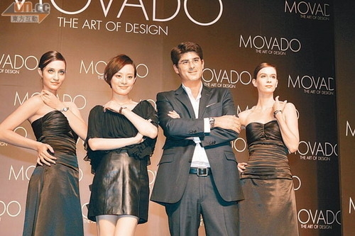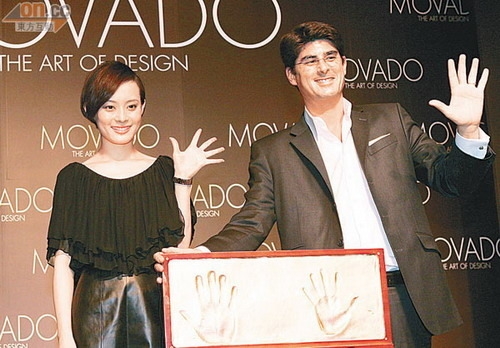 孫儷以代言人身份,出席北京舉行的MOVADO手表品牌的記者招待會,身穿黑皮裙的她盡騷長腿,令全場注目,她獲邀與品牌高層Fabrice Poch上臺打手印作見證,盡顯氣派。