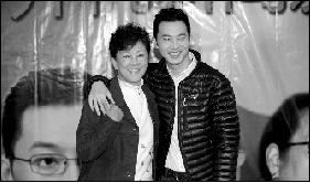 宋春麗(左)、沙溢演母子。(王儉 攝)