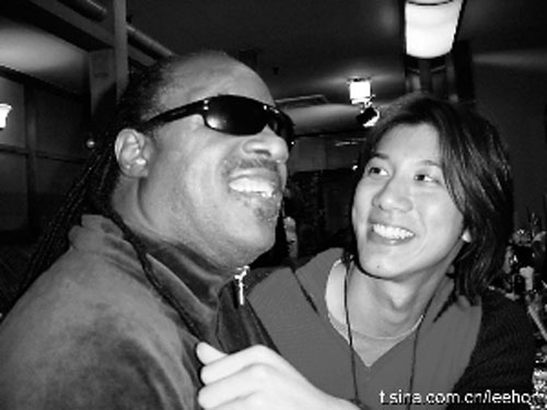 王力宏昨日在微博貼了與美國盲人歌手史提夫·汪達于2003年在日本的合照,王力宏露出粉絲見到偶像的幸福狀。