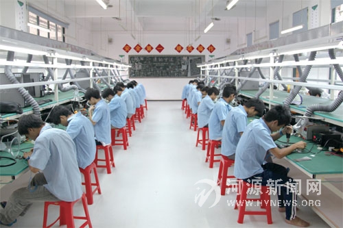 筑巢引鳳,引企入校。今年6 月,我市校企合作再創新模式,市高級技工學校通過與企業合作,將“手機維修車間”和“模具生產車間”正式搬進學校,立體式育人。此舉在河源為首例,在全國也不多見。