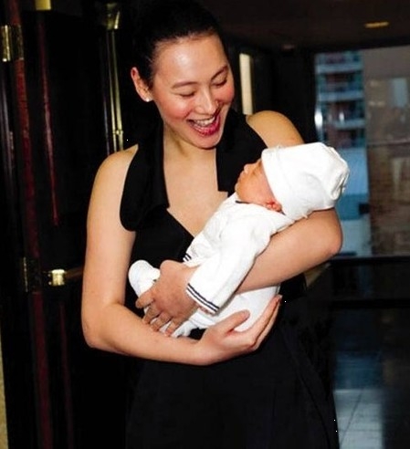 梁洛施抱兒子