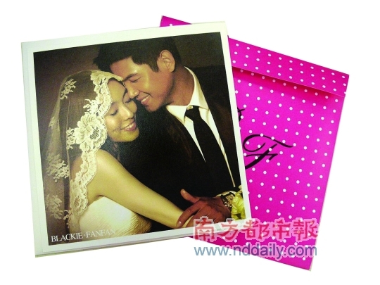 兩人喜帖的“真面目”已經(jīng)曝光,33厘米長的“巨帖”讓很多人吃了一驚,但其實(shí)是為了襯兩個“高人”(范范和黑人個子都很高),因兩人皆是基督教徒的緣故,封面以十字架設(shè)計(jì),除了公示雙方信仰外,更有“1+1等于‘+’(家)”的寓意。此外,喜帖內(nèi)還特別收錄了《圣經(jīng)》“詩篇23章”,因?yàn)楫?dāng)年黑人第一次進(jìn)范家門時,范媽媽逼他念的經(jīng)文正是“詩篇23章”。