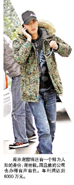 增加了影視制作和經紀之后,公司的業績也將進一步的得到提升,謝霆鋒下一步計劃將公司推上市了。前日,某券商分析師王競聲稱,據他了解謝霆鋒最近在上海頻頻活動,目的就是為公司上市創造條件,這個消息在市場上已經傳了很久,他作為券商的代表也與謝霆鋒有過接觸,據他掌握的情況來看,謝霆鋒的公司實際已經成立了8年之久,公司一年的凈利潤在8000萬元左右,按照這樣計算目前其身價已經高達6億之多。