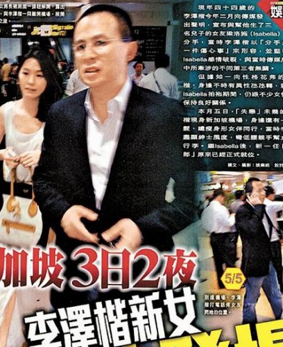 報道稱,李澤楷個人身家超過400億元臺幣,和梁洛施分手后,感情生活依舊是媒體焦點。他當天在機場和年約25歲的年輕女子前后現身,卻刻意保持距離,發(fā)現鏡頭還面露不悅,不免令人懷疑。不過他事后立刻透過簡訊響應:“Second Cousin(二表妹)。“否認緋聞。