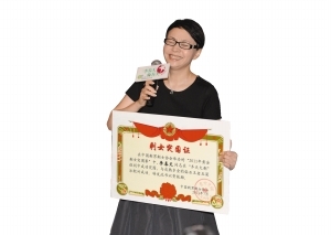 宋丹丹手捧“剩女突圍證”,笑得樂開了花。