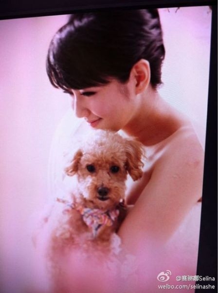 今天凌晨Selina在微博上曝光的這張圖片,很可能是她拍攝新的婚紗照的一瞥。Selina表示:“今天我化起了久違的濃妝,盤起了新長的黑短發(fā),穿起等了我半年的Vera Wang(知名婚紗品牌)。”