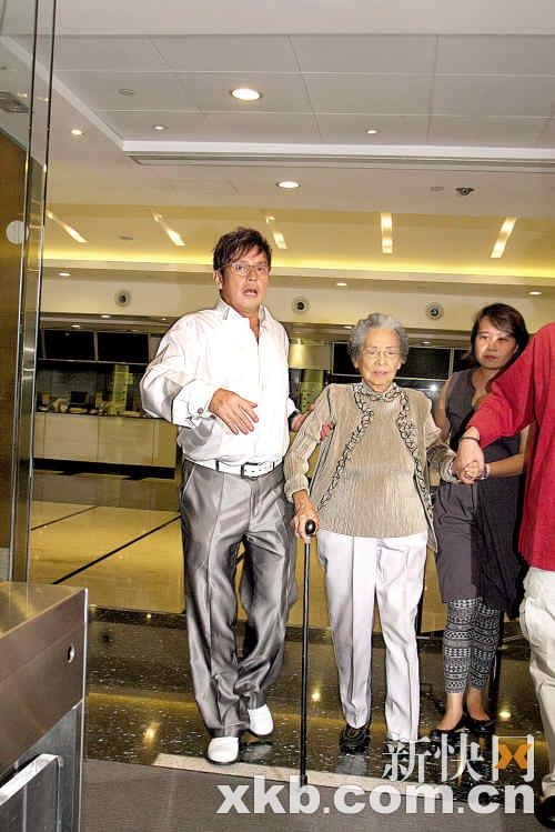 Wendy(右)和兒子(左二)攙扶譚老太離開。
