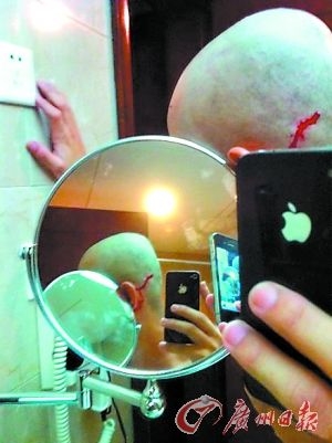 演員文章突發微博,上傳了一張頭部受傷的照片,照片中,已經剃了光頭的文章,左側頭部出現了一道紅色疤痕,據照片目測有5厘米左右。而不斷淌下來的血水,也隨著耳朵的輪廓,蔓延到耳根下部。文章在一旁配文字,寫道:“縫針?”似乎還在猶豫要不要去醫院做縫針處理。16分鐘后,再次上傳照片的文章已經入院,雖然沒有頭部包扎后的照片,但床單上的斑斑血跡清晰可見。