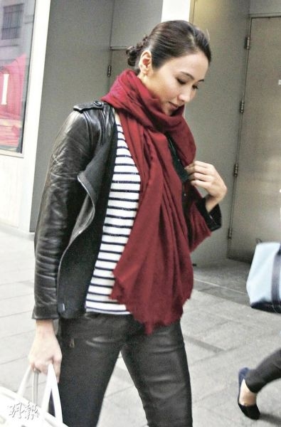 黎姿看見記者拍照,立刻以圍巾遮掩肚子。
