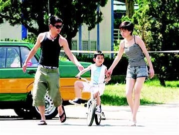 景崗山和妻子馬葭陪兒子“井蓋兒”。資料圖來源:天府早報