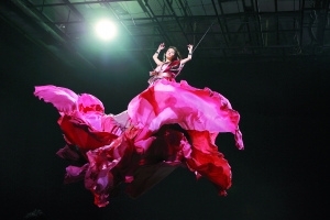 楊冪性感長(zhǎng)裙吊半空 自嘲石榴裙下藏了一群男人