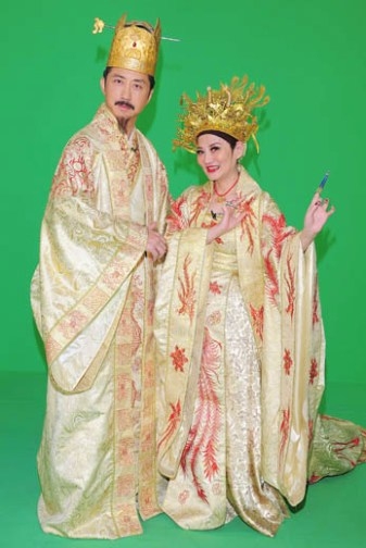 小燕姐、哈林(庾澄慶)近日為《2012超級巨星紅白藝能大賞》做宣傳,兩人扮演皇后、皇上,不過哈林一臉不知如何是好,相當(dāng)不自在的樣子,逗笑了現(xiàn)場的所有人。 兩人錄制除夕特別節(jié)目《2012超級巨星紅白藝能大賞》預(yù)告,扮起皇后、皇上,裝扮好笑就算了,兩人因穿上戲服后,行動也很不方便,讓首次穿上皇帝裝的哈林不知如何是好,而一向習(xí)慣搖滾裝扮的他,穿上龍袍,內(nèi)襯長窄裙,讓他只能以小碎步移動,加上山羊胡粘上膠水,更不能任意大動作。 哈林一看到小燕姐的皇后扮相,忍不住糗說:“我看你不是皇后,是皇太后吧!”不過哈林自己除了一臉不自在外,就是擺不出像樣姿勢,只得撒嬌求助小燕姐:“皇上的手到底要怎樣擺呀?”結(jié)果被小燕姐吐槽:“皇上哪有啥POSE,皇上就是個傻子!”