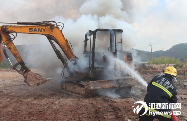 據初步調查,該事故是由于一住戶放置在樓梯間的一輛女裝摩托車自燃引起的,火災事故未造成人員傷亡及重大財產損失。而在25 日,粵贛高速東源高速路口紅光工業區后面,一輛挖掘機因在高溫下連續施工發生自燃,進而猛烈燃燒,大火將挖掘機機頭部位“吞噬”。東源消防官兵接到報警后迅速趕到現場救援,為防止爆炸,首先疏散施工人員和周邊圍觀人員,封鎖現場并通過水槍進行滅火,最終將大火撲滅,所幸未造成人員傷亡。
