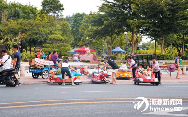 市民陸先生在自己的朋友圈發(fā)了一張“攤販滿廣場(chǎng)”的照片,拍的就是傍晚的火車站廣場(chǎng),據(jù)了解,到了周末和暑假,這些兒童游樂(lè)設(shè)施的攤主早早就開(kāi)攤了。攤販一多,垃圾就多,陸先生認(rèn)為:“火車站是河源文明的窗口,外地人一下火車就看到這樣的河源,實(shí)在有損河源的城市形象。”