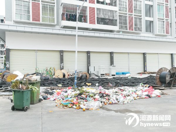 前日中午,記者來到姚女士所說的地點。在現場,記者看到,金澤苑E 區4 棟左側和背后堆滿了電纜線,而在這些電纜線前,有一堆散發著惡臭的生活垃圾。桶體上寫著“合通環衛”的兩個綠色垃圾桶已經被裝滿了,剩余的垃圾都堆在地面上,占據了將近15 個平方米的面積。據金澤苑小區居民說,該垃圾堆所在不屬于小區范圍,金澤苑小區內并未出現垃圾無人清理的現象。在金澤苑小區物管處,該小區物業管理工作人員證實了居民所說。金澤苑物業表示,上述垃圾堆所在地屬于鄰近的一個小區潮通公寓,而金澤苑本身配備了清潔工清理本小區垃圾,“業主已經反映過情況了,既然我們小區居民受到了影響,我們會和潮通協商,讓他們處理,如果他們不處理,我們會向環衛部門投訴。”