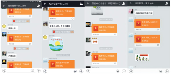 如今,方便快捷的微信流行起來,微信基本不存在延遲和信息滯留,即使是除夕夜發給朋友的拜年微信也能秒到,伴隨微信拜年一同興起的“ 搶紅包”更是成為過年必備環節。“現在過年,最忙的是搶紅包,連80 多歲的爺爺也搶得不亦樂乎。”曉輝說,現在春節期間祝福的方式更加豐富,他會根據不同的情況進行選擇。“關系較好的朋友和長輩,條件允許的,登門拜年,太遠的打個電話,發個短信;普通朋友和同事之間就很隨意了,發紅包也好,發微信也好,錄小視頻也好,祝福一樣到。”曉輝認為,祝福的方式會不斷演變,但通過祝福傳達的心意不會變。