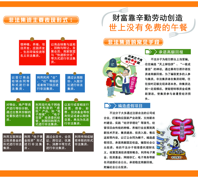 不要參加所謂公司提供的講座、免費(fèi)旅游、免費(fèi)茶話會(huì)及免費(fèi)參觀公司經(jīng)營(yíng)等活動(dòng),防止受其蒙蔽;不要盲目相信高額回報(bào)的宣傳和所謂“公司實(shí)力”,防止一葉障目。