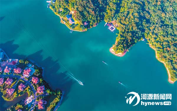 水,綻放生命的因子。東江源出 于贛,循勢入粵,滔滔南流,在其與新 豐江交匯處的浩渺水面,我們找到了 舟楫人家,找到了大美河源。