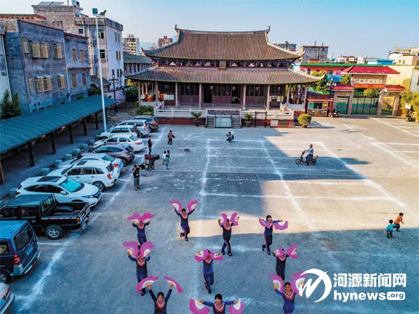 兩千多年的佗城,一如往日的安寧祥 和,此刻被無人機打破了寧靜,連廣場舞大 媽都渾身洋溢著現代的氣息,學宮門前,鏡 頭下展現著揮灑的舞姿。
